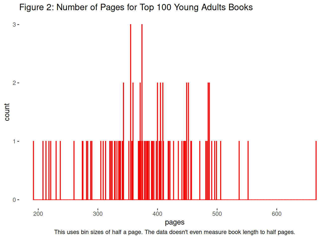 fig_4_titles <- labs(title = "Figure 2: Number of Pages for Top 100 Young Adults Books",