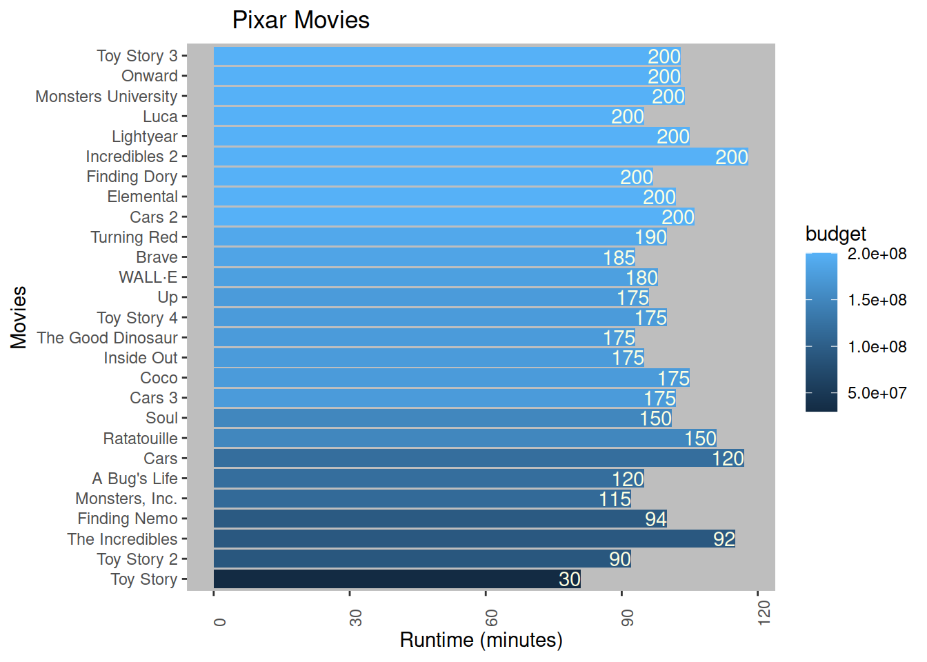geom_text(aes(label = budget/1e6), hjust = +1, color = "lightyellow") +